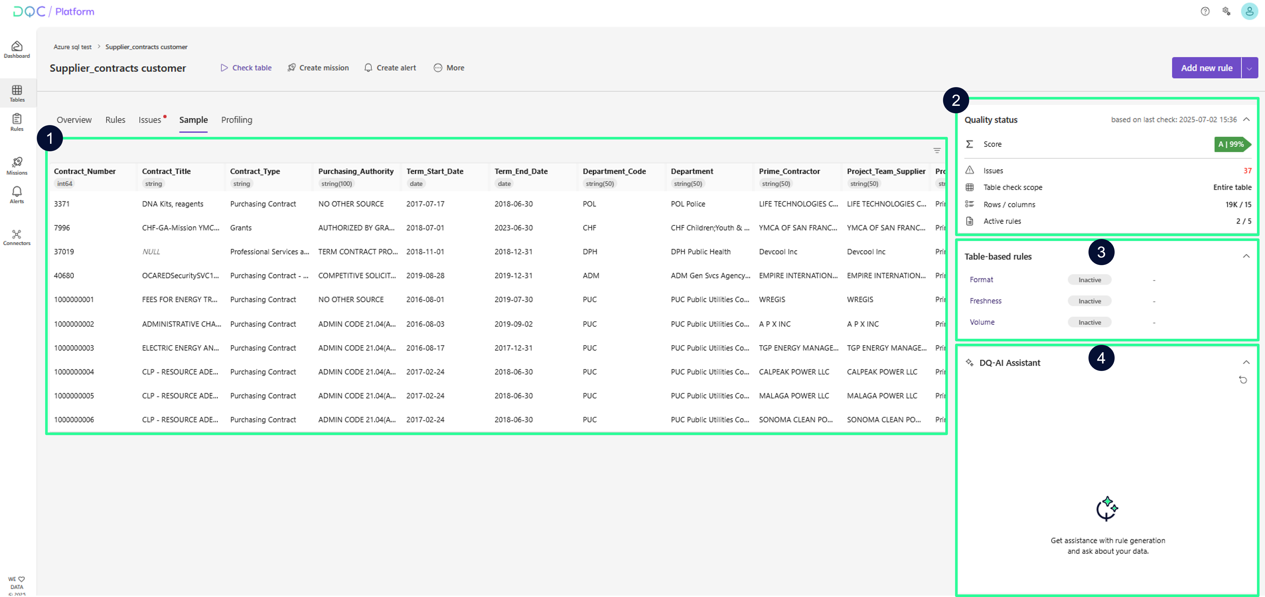 In der rechten Seitenleiste wird der aktuelle Datenqualitätsstatus angezeigt: