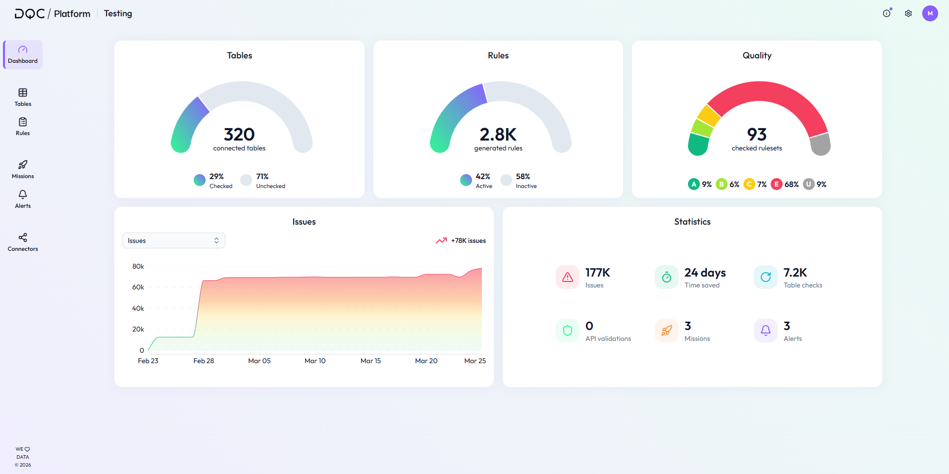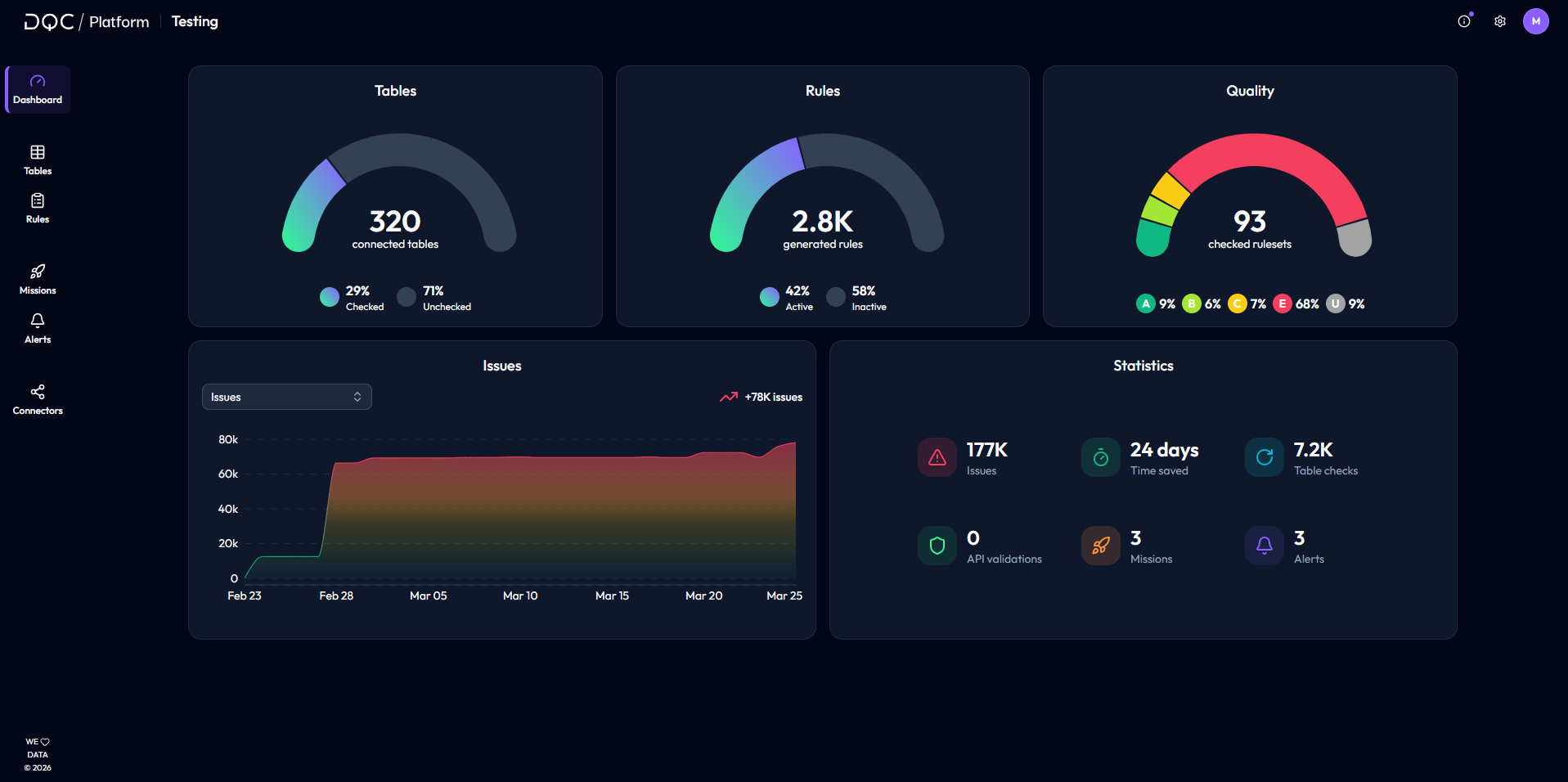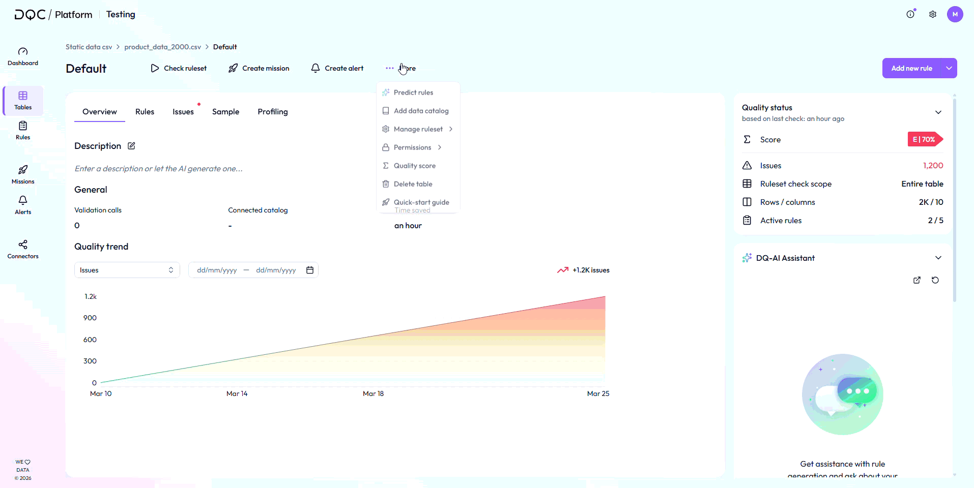 This release introduces the new Clarity UI design system, enhanced DQ-AI Assistant capabilities with cross-table awareness, and natural language schema generation for the PDF connector. It also delivers faster performance through virtualization and prefetching, improved permission assignment during static file loading and virtual table creation, and more control with column-level scoping at the ruleset level.
