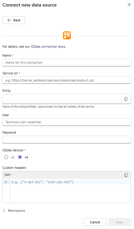 The DQC Platform supports connections to OData v2 and v4 services — including SAP-based APIs. This guide explains how to configure an OData connector with the required URL, credentials, and optional headers.