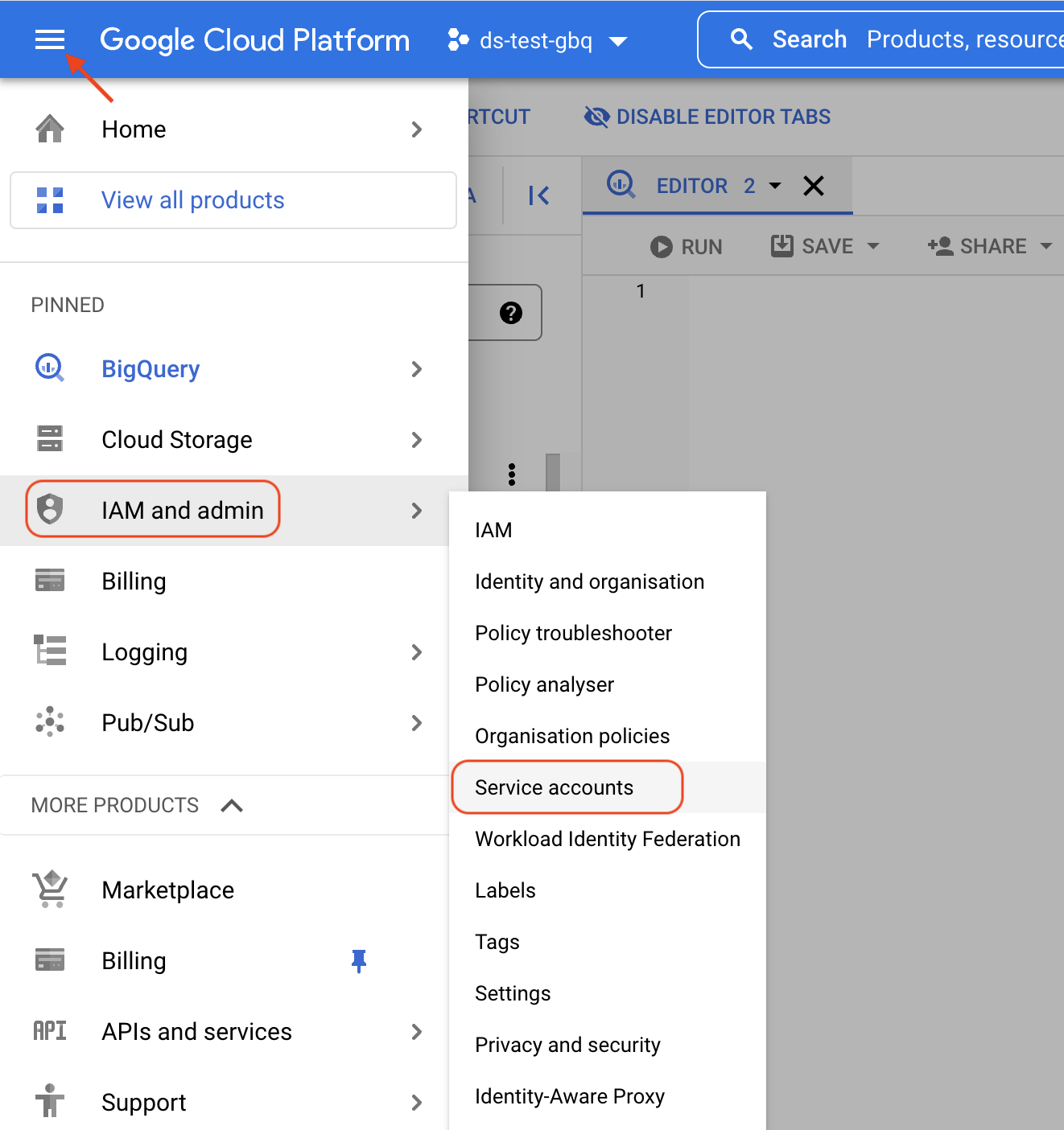 Go to IAM & Admin > Service Accounts