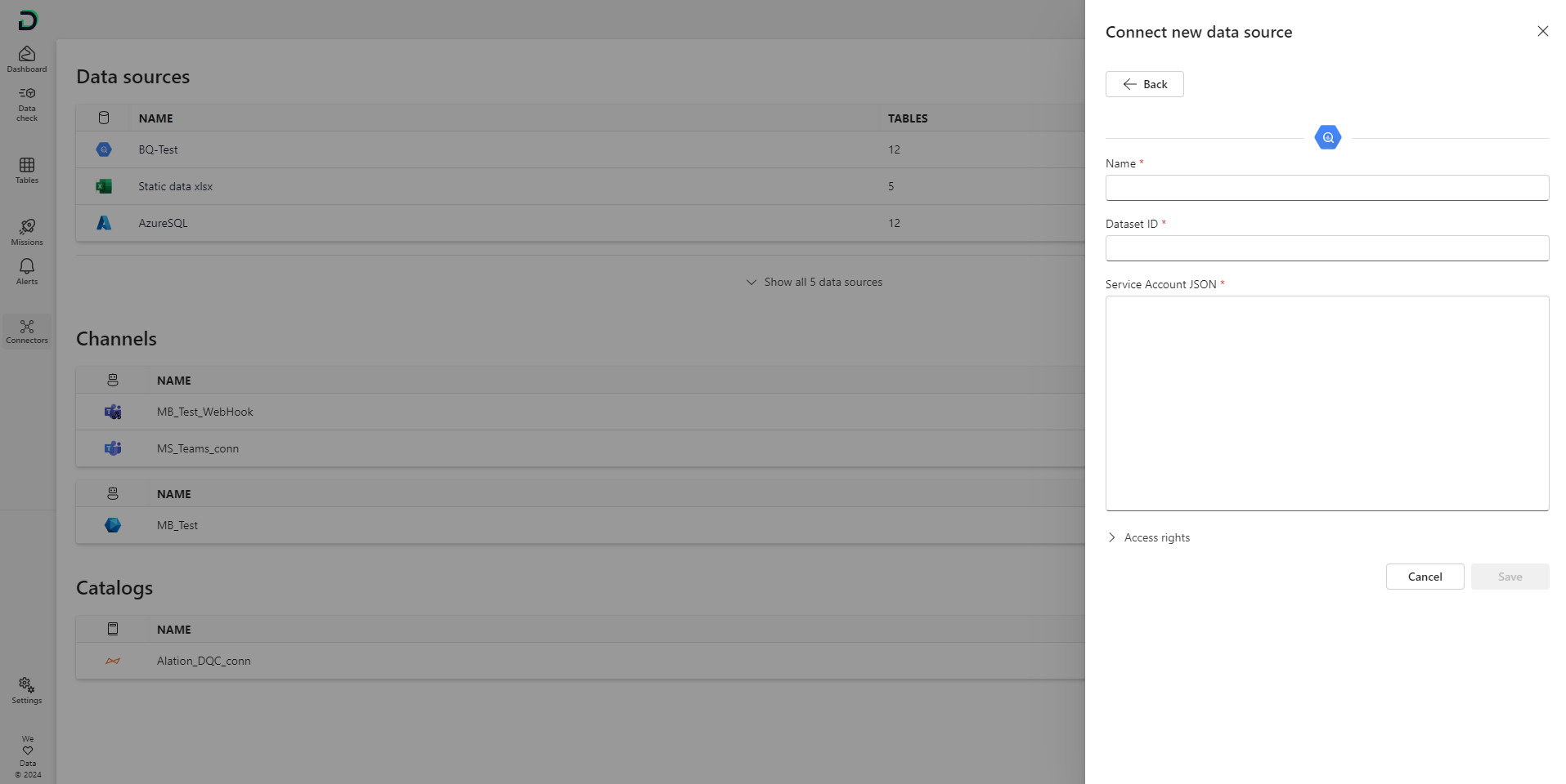 Paste this into the Service account JSON field in the DQC Platform