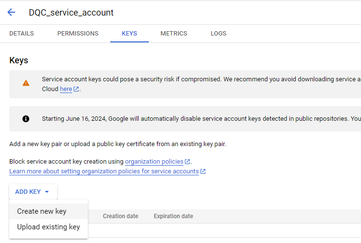 Add a dedicated service account for the DQC Platform