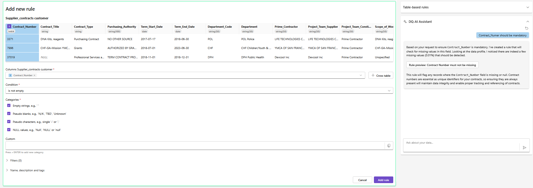 Create a rule using the DQ-AI Assistant