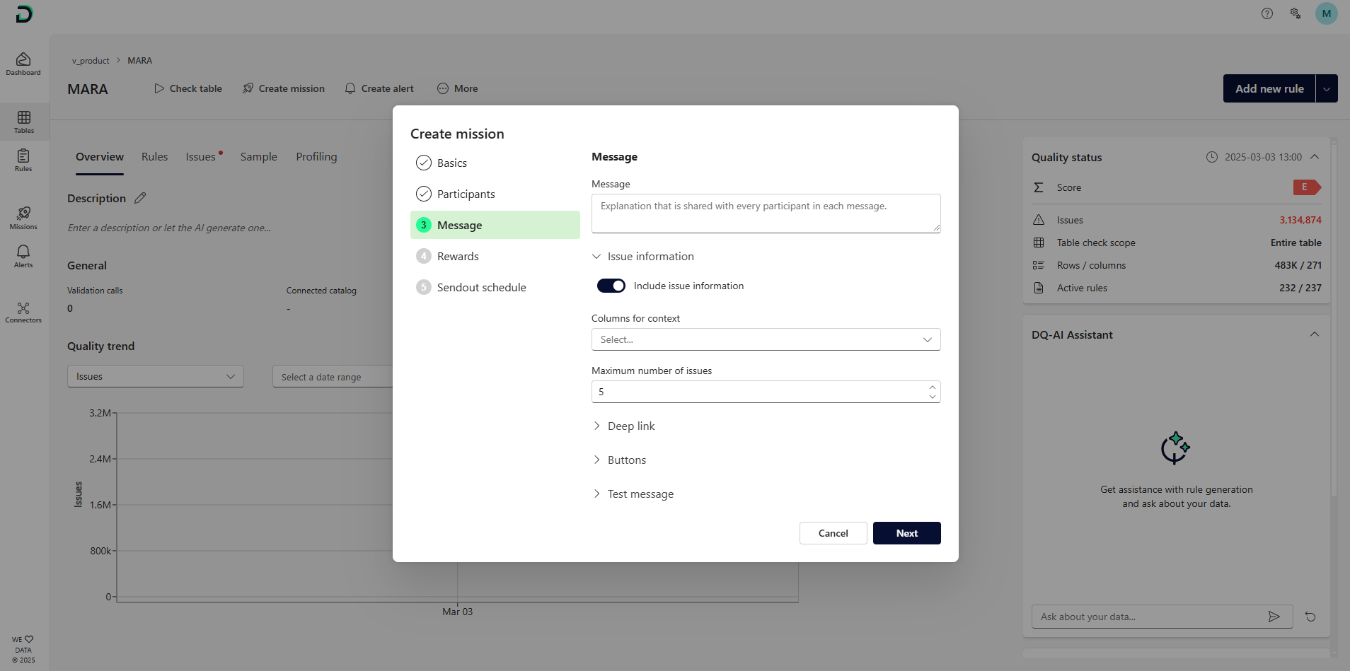 Message form for missions and alerts: The form structure is improved and issues will be grouped together. Same holds for the mission and alert edit screen