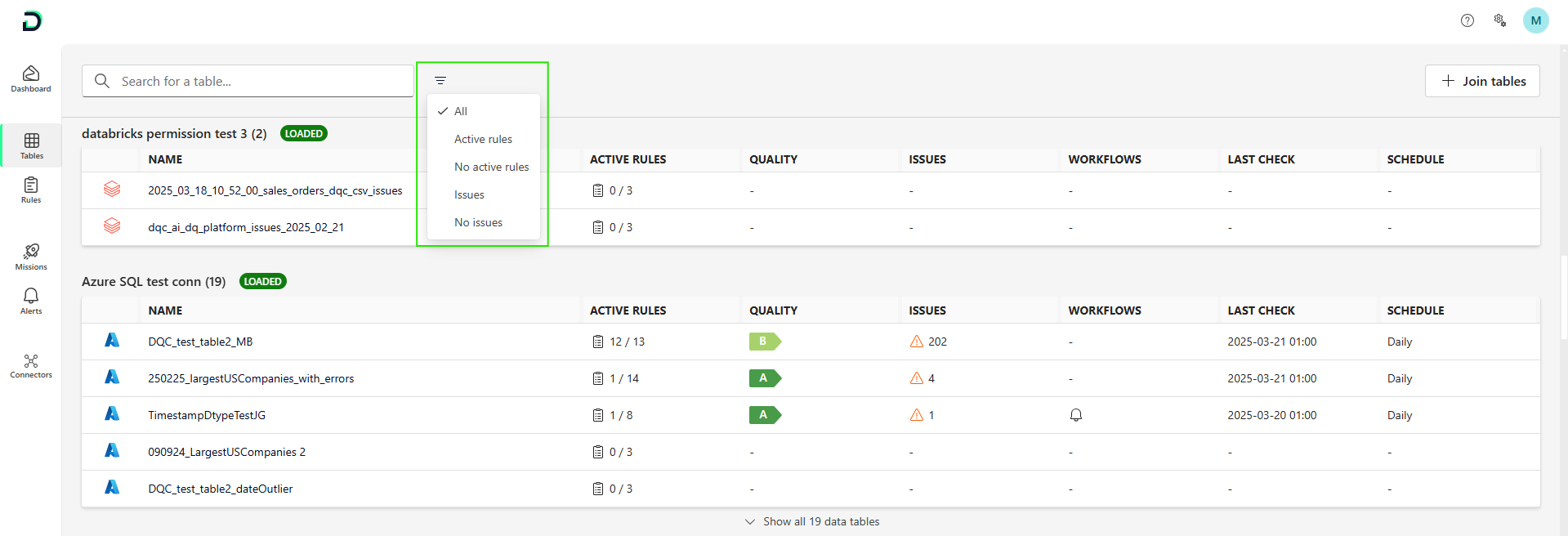 Table overview filter: We made it easier for customers to filter for tables they are looking for: