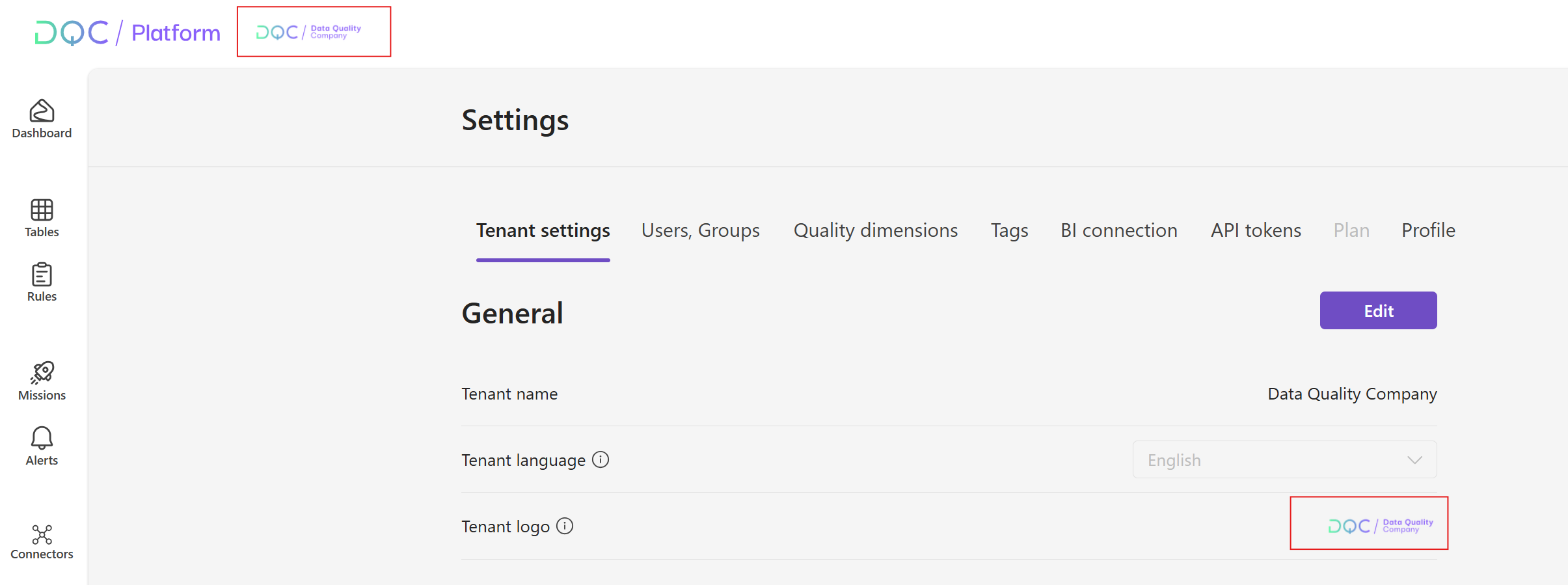Once uploaded, it appears in the platform header: