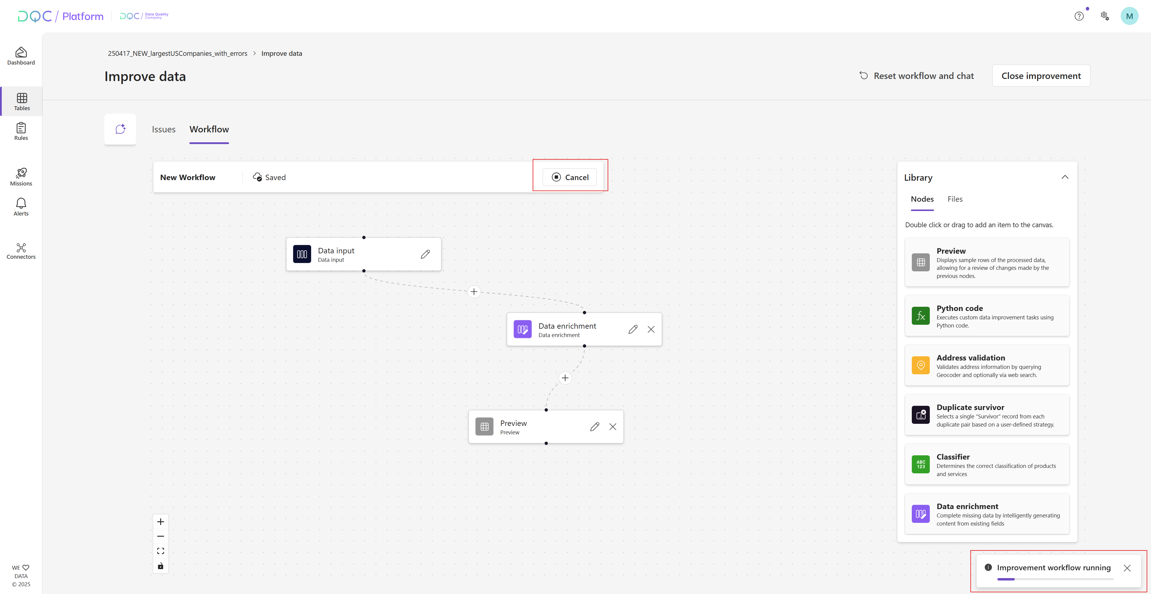 Cancel stuck or long-running jobs right from the workflow canvas with the new Cancel button — save compute and regain control fast