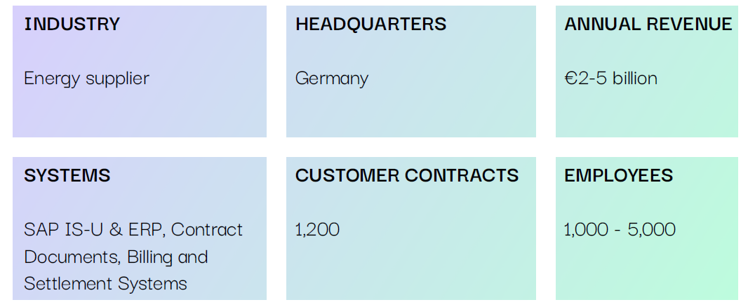 These problems were further exacerbated by the fact that the relevant data is spread across multiple systems; including contract documents, master data, consumption data, and billing systems. There was no end-to-end linkage of this information, so inconsistencies and the resulting underbilling often went undetected.